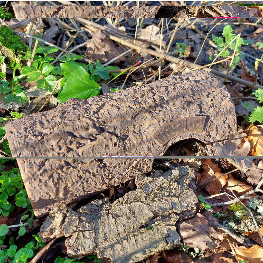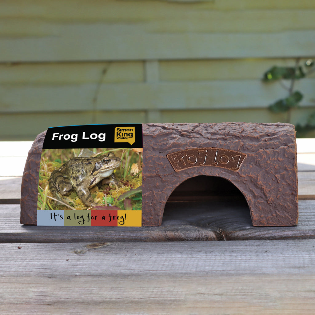 The Simon King Frog Log is constructed from our environmentally friendly material called Clayplas*, designed by naturalist Simon King, in the style of a realistic wooden log to fit into the natural surroundings. The Frog Log provide a cool safe space for frogs and toads out of sight of predators and makes for a great natural-looking feature and addition to any garden pond.