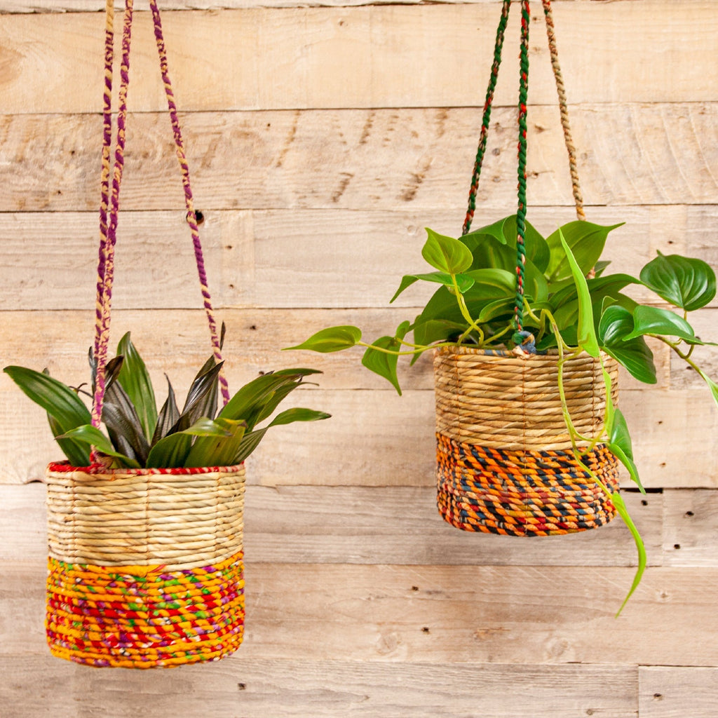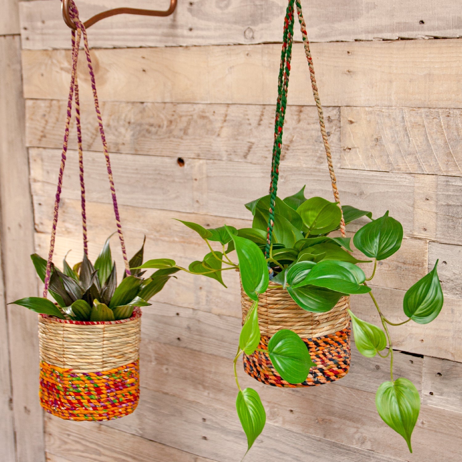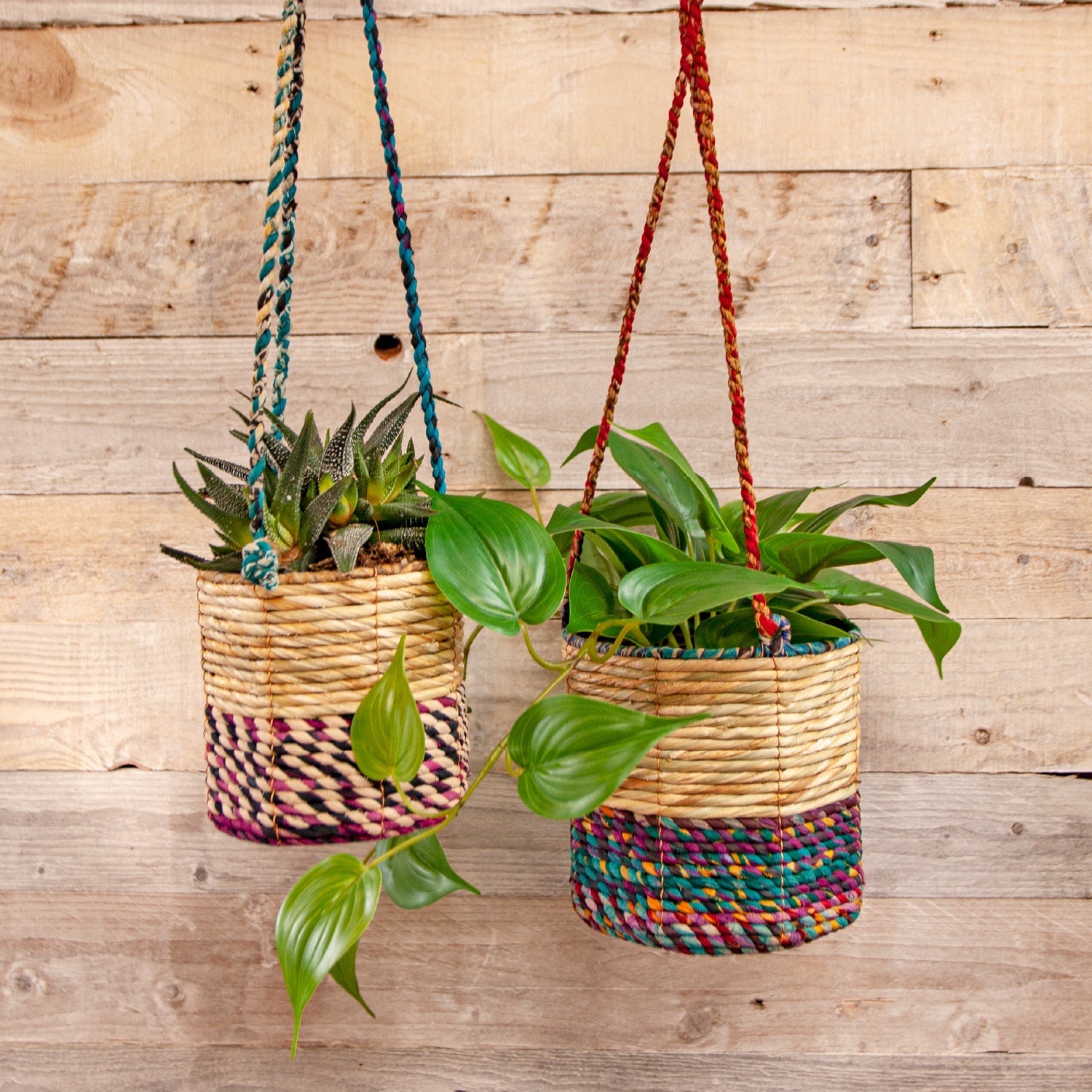 The stunning new Artisan Hanging Basket range made from Hogla, a type of seagrass that is considered a weed, and recycled saris are Fair-Trade products that help the disadvantaged women in Bangladesh who make them by hand.
