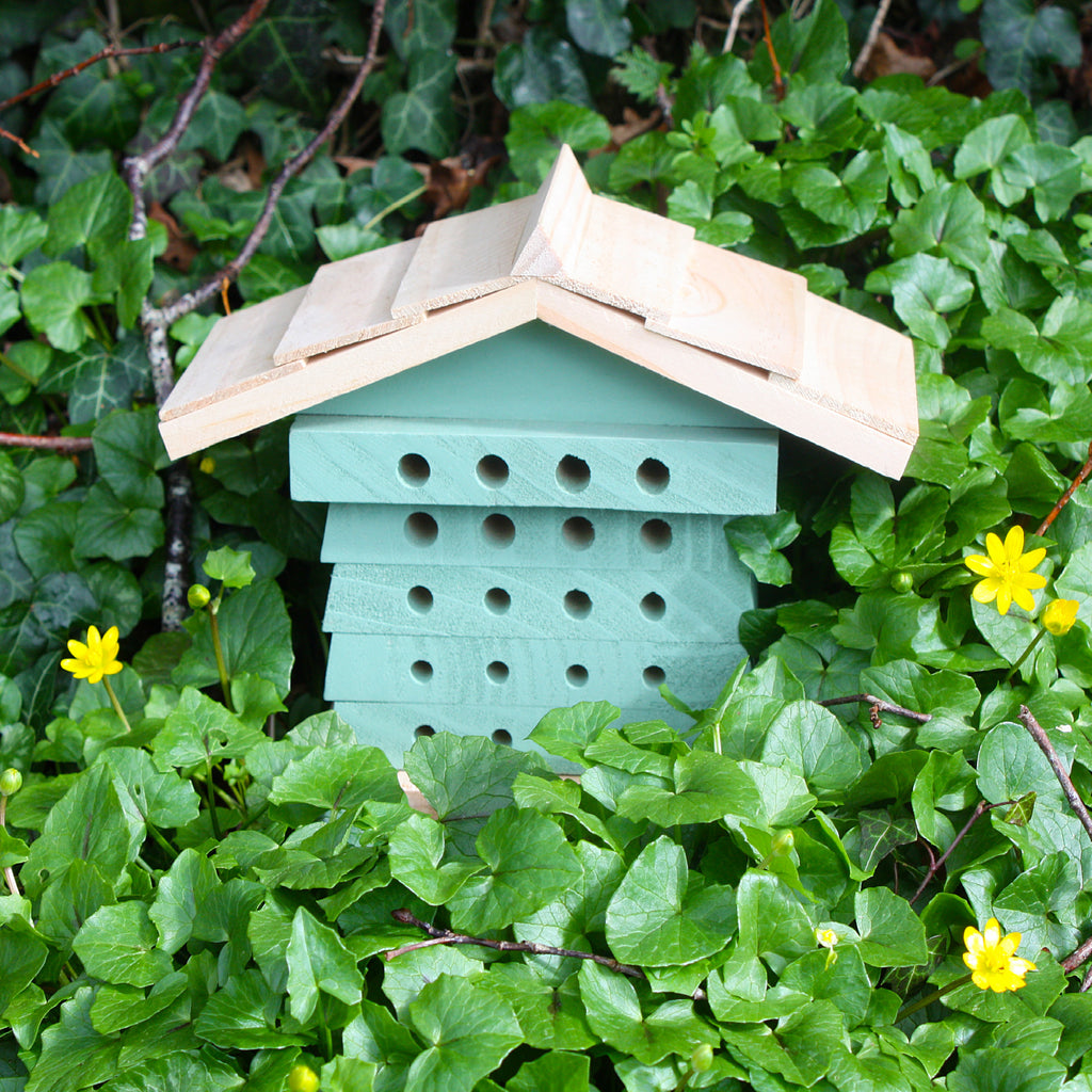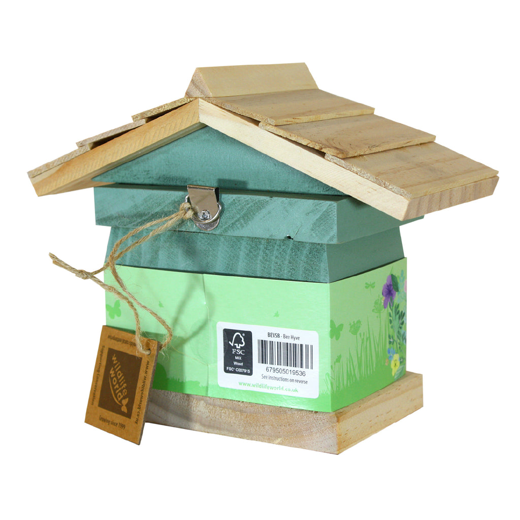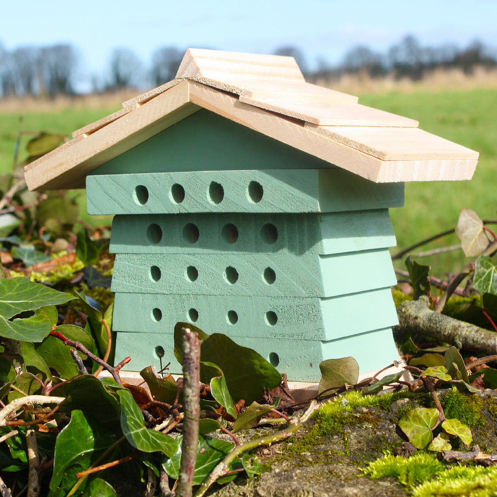 The 'Bee Hyve' is designed to provide a home for pollinating bees and beneficial insects in your yard or garden. Pollinating bees such as solitary provide invaluable pollination services to mankind, pollinating flowers, fruit and vegetables. The 'Bee Hyve' is beautifully constructed from FSC® timber and the body is painted with water-based sea green paint.