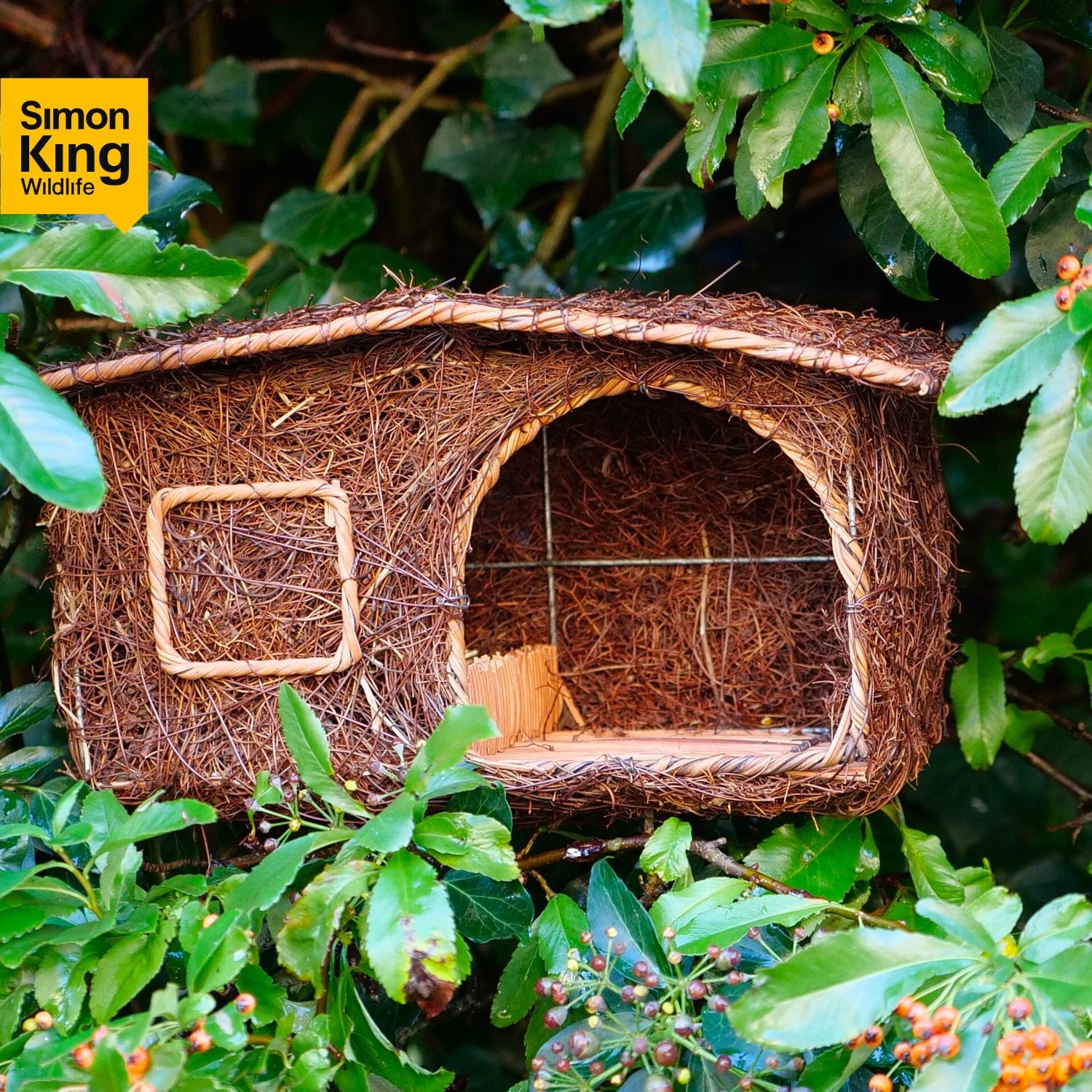 The Simon King Cabin design features an open entrance door and a secluded nest space behind the sidewall. In addition to nesting, small birds may use the cabin to shelter from harsh weather. In finding cover, they can save essential body fat, which aids their survival.